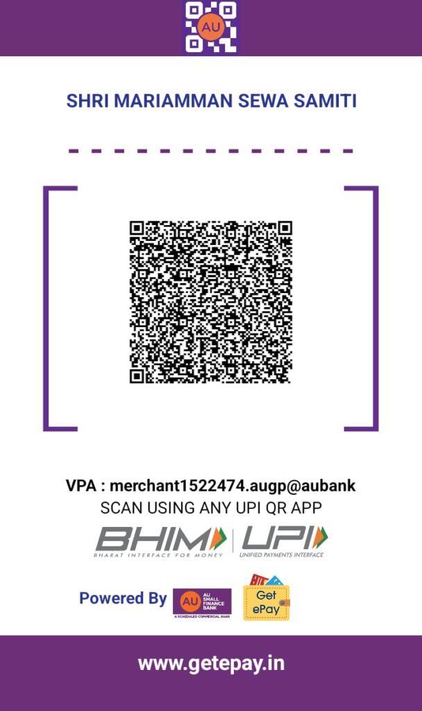 Your generous contribution helps Shri Mariamman Sewa Samiti continue its spiritual and social initiatives—temple construction, community support, and welfare programs. Every donation brings us one step closer to serving humanity and preserving our cultural heritage.